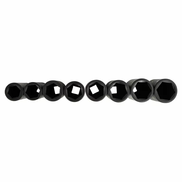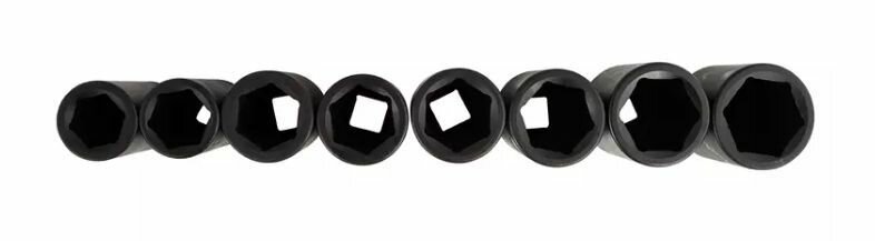 В наборе 8 удлиненных шестигранников размерами от от 24 до 38 мм мм.