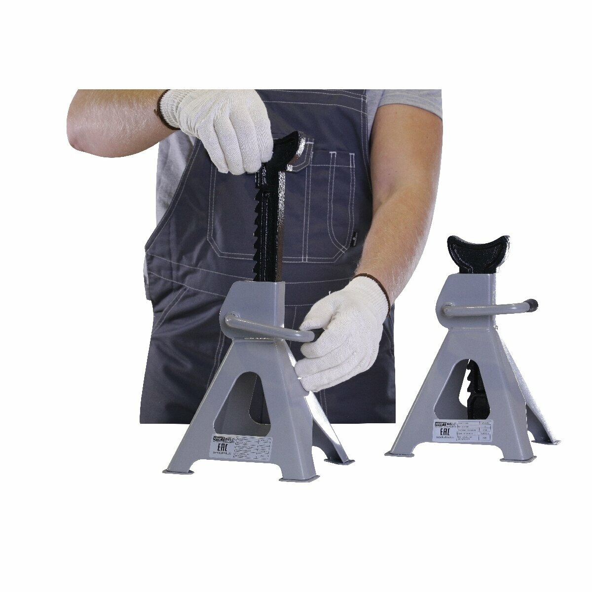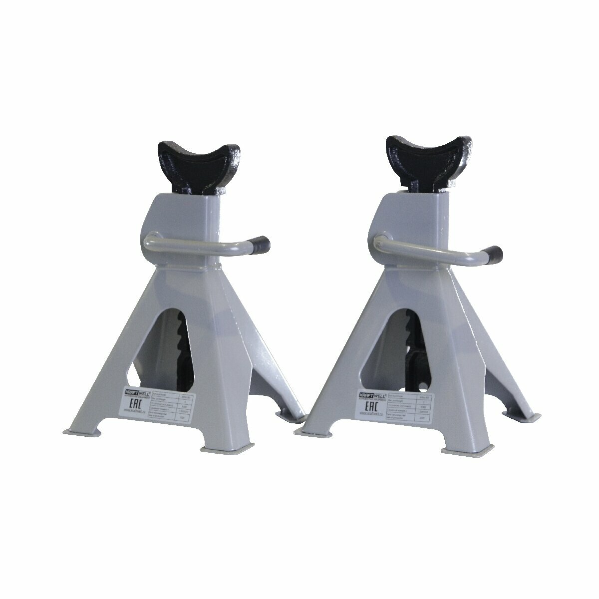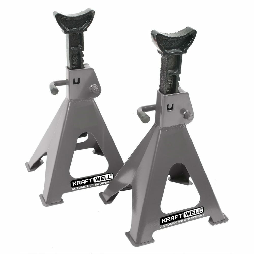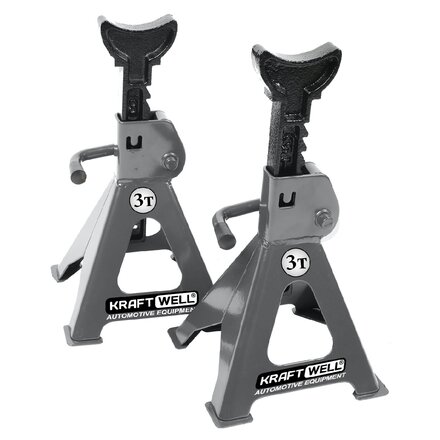 Стойки опорные KraftWell KRWJS2 для страховки поднятого на небольшую высоту автомобиля от падения. В комплект входит 2 стойки. Грузоподъемность каждой - 3 тонны.