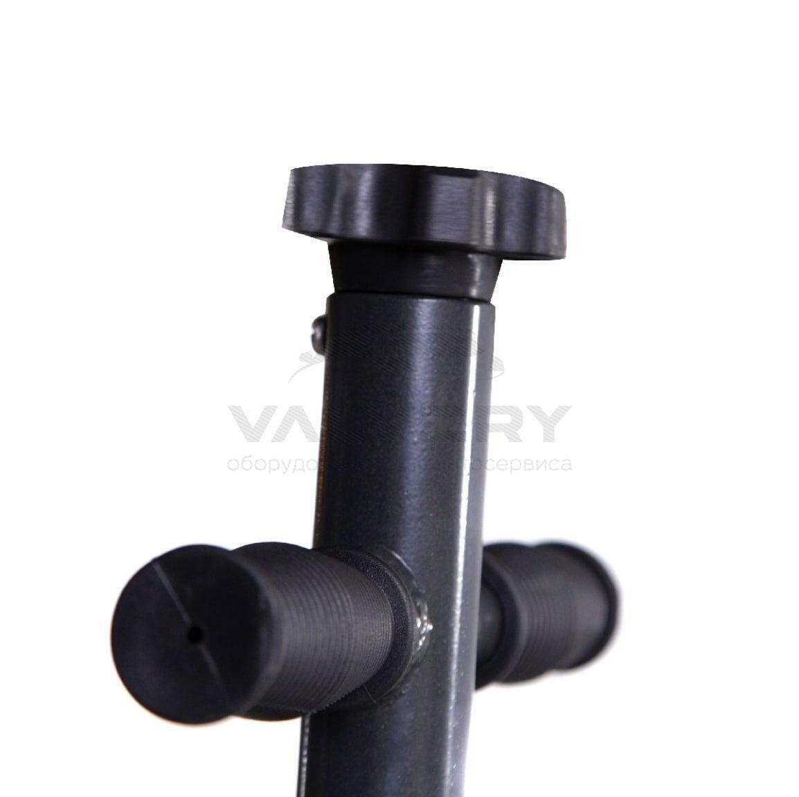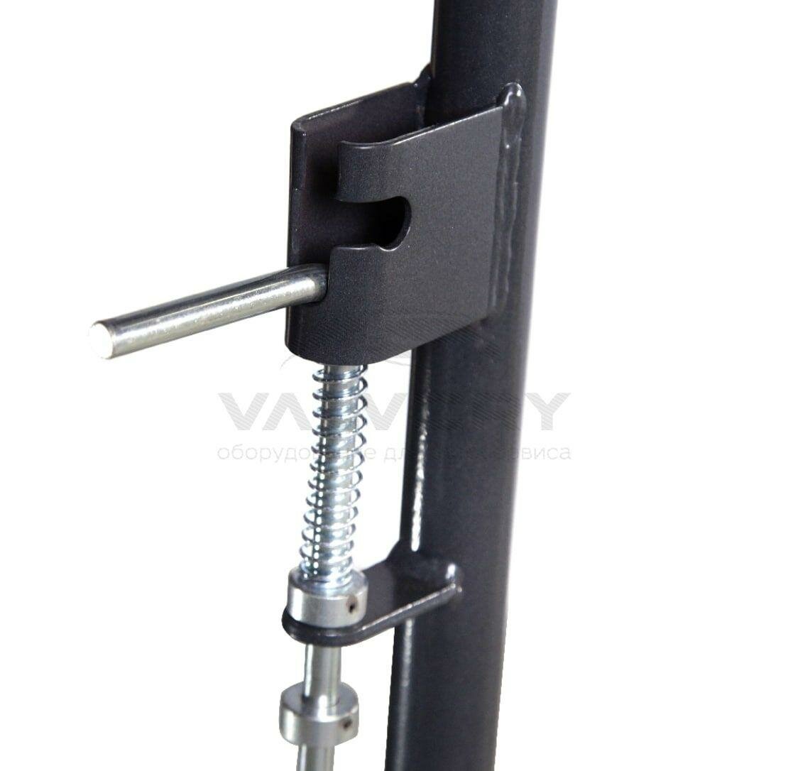 Удлиненная конструкция базы облегчает доступ к месту подхвата. Домкрат оснащен педалью для быстрого подвода опорной площадки к кузову автомобиля. Карданный механизм привода запорного клапана обеспечивает плавное опускание автомобиля. На случай выхода из строя насоса, в стандартной комплектации есть ремкомплект.