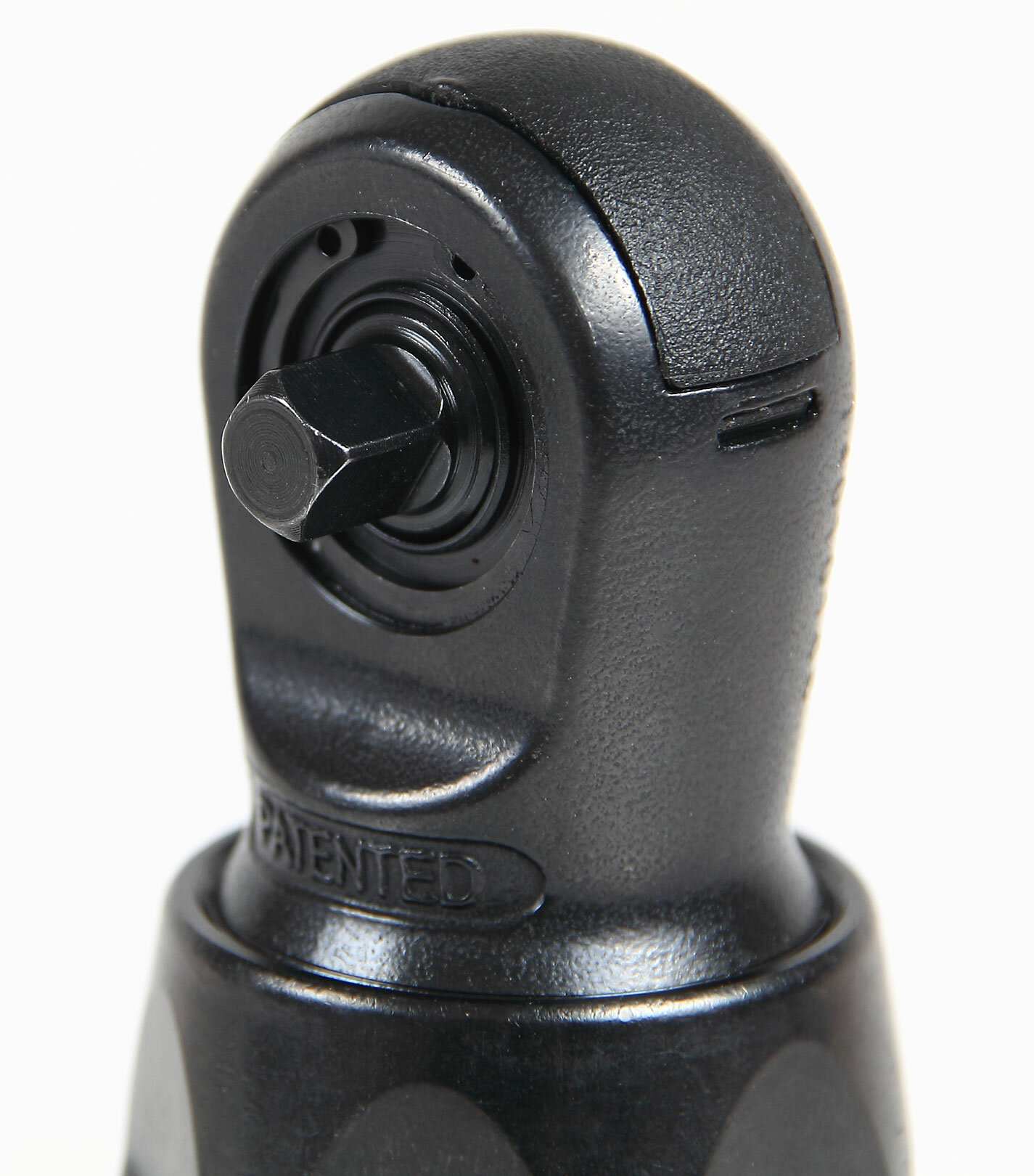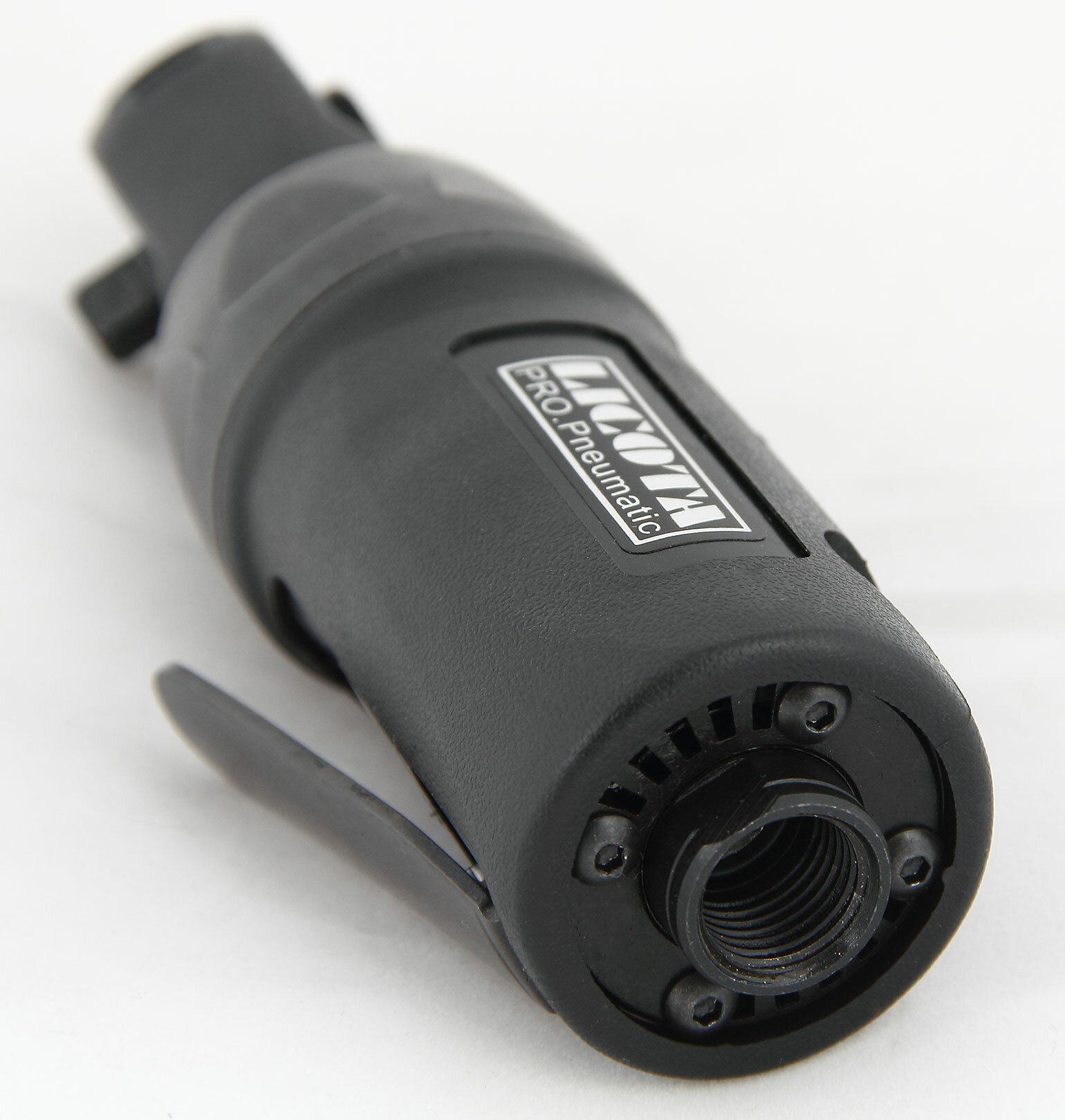 Корпус пневмотрещотки выполнен из алюминия. Малый размер - 135 мм и вес - 0,5 кг позволяют оператору работать с крепежом в труднодоступных местах.
