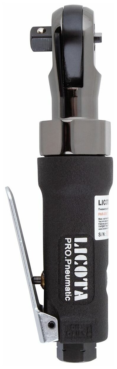 Пневмотрещотка Licota PAR-03007 в металлическом корпусе с рычажным включателем и двумя режимами работы (1 на откручивание, 1 на закручивание). Предназначена для монтажа резьбового крепежа.