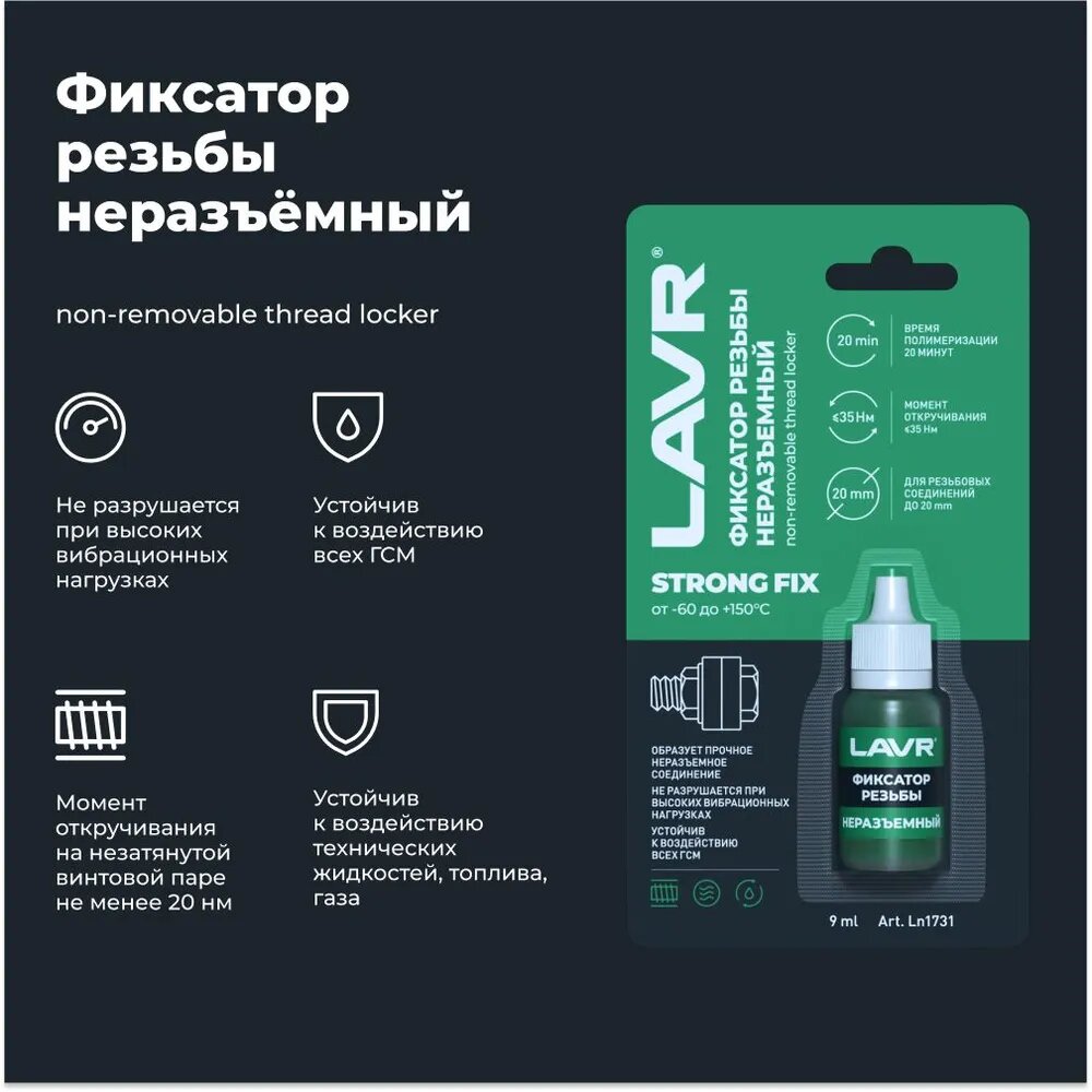 LAVR Ln1731 Фиксатор резьбы «Неразъемный» StrongFIX 9 мл
