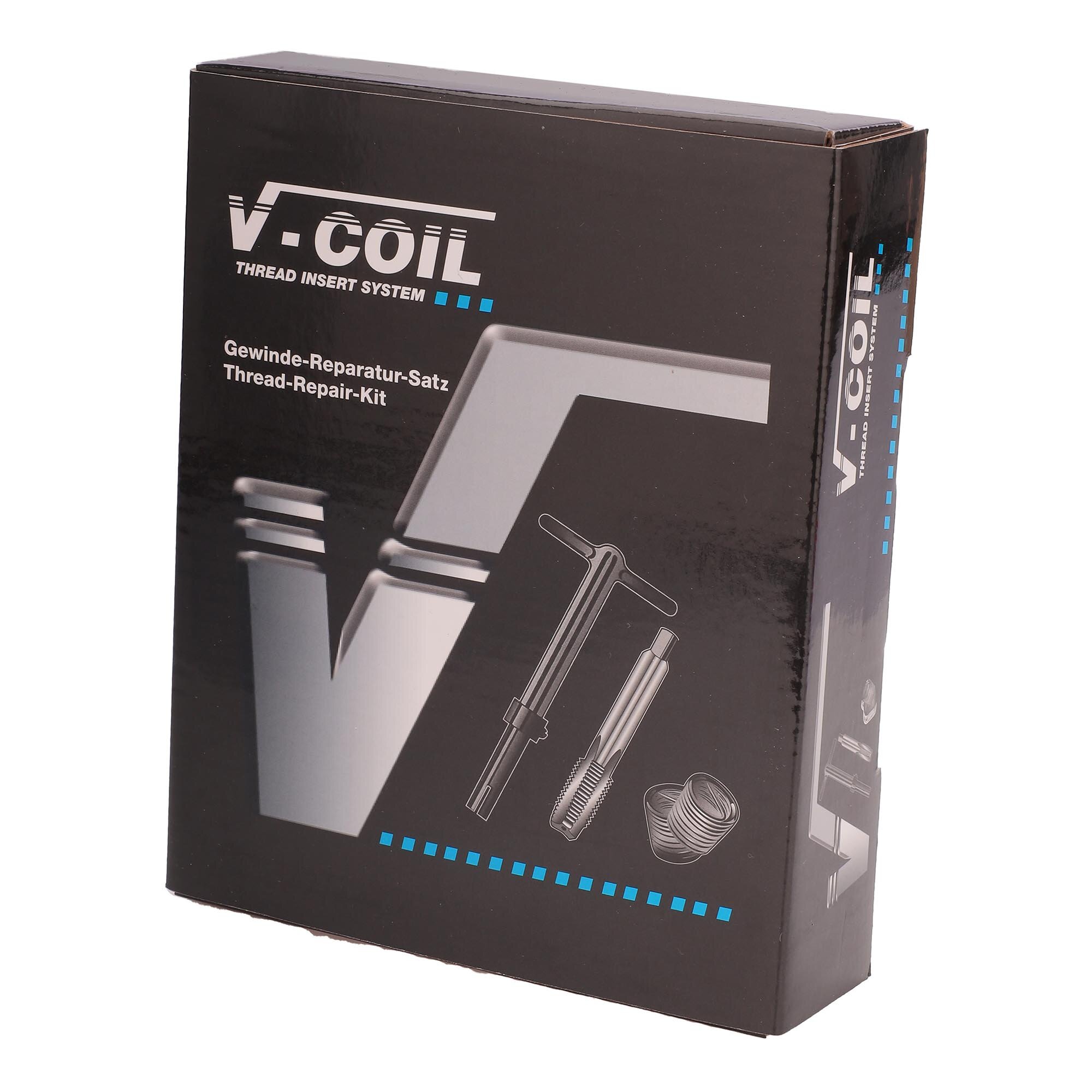 Набор V-Coil VC-04037 предназначен для проведения комплекса работ по установке резьбовых вставок (футорок) с размером M20x2,5. Резьбовые вставки типа S изготовлены из высококачественной хромникелевой стали, стойкой к корозии и высоким температурам.