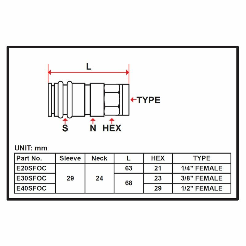 Пневморазъем быстросъемный композитный Licota E20SFOC “мама” для быстрого и герметичного соединения элементов пневмолинии.