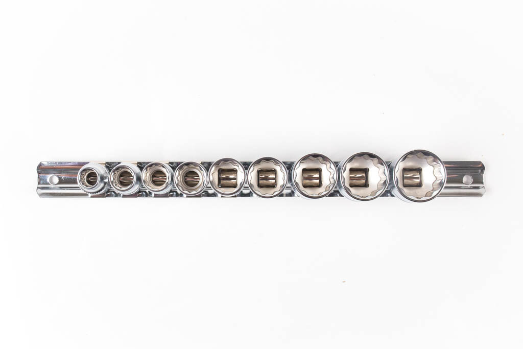 Набор торцевых головок Licota TBS-22006 из хром-ванадиевой стали предназначен для ручного монтажа/демонтажа резьбового крепежа с дюймовыми размерами. Набор из 10 предметов на металлическом держателе-линейке.