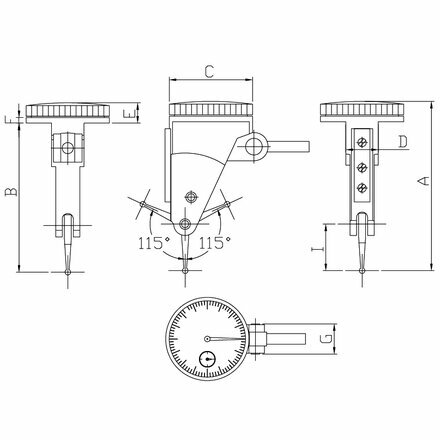 Данный тип индикатора оснащен шкалой, размещенной перпендикулярно оси измерительного рычага в среднем положении.