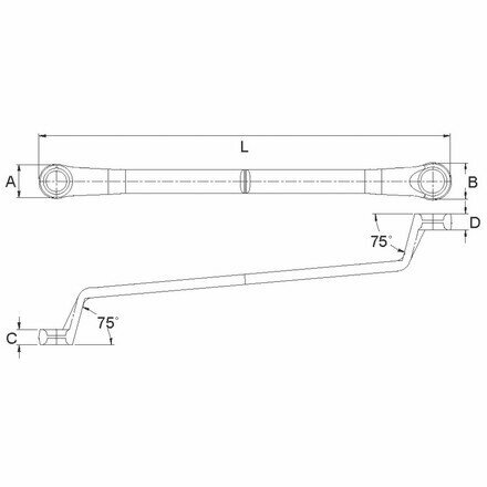 Матовая поверхность обеспечивает надежный хват и препятствует выскальзыванию инструмента из рук. Профиль накидной части из 12 граней подходит к головкам болтов и гайкам как 6-, так и 12-гранного профиля. Изогнутая под углом 75° рабочая часть ключа дает возможность работы с крепежом, расположенным в углублениях.