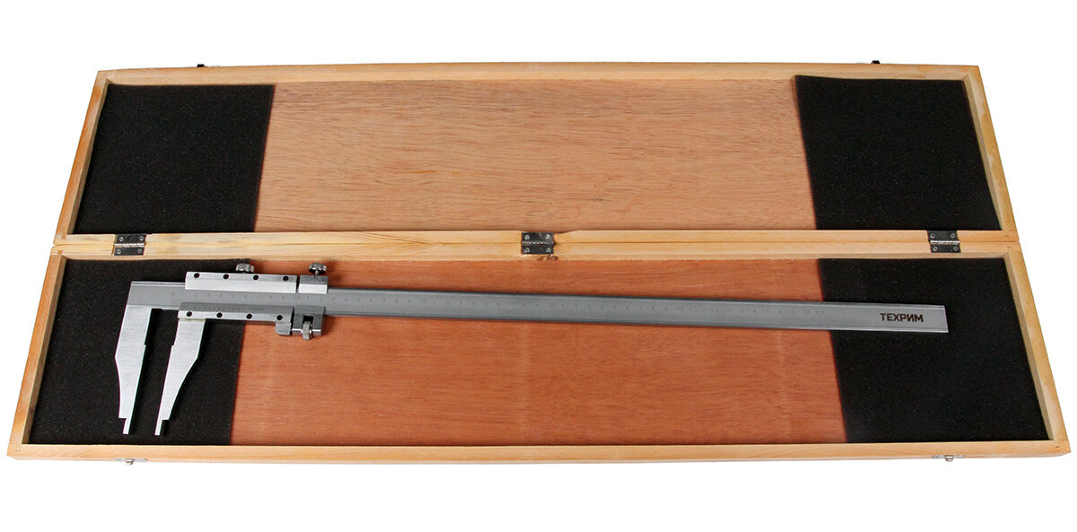 Штангенциркуль нониусный ТЕХРИМ T050019 из углеродистой стали с губками для внутренних и наружных замеров. Раположение губок - одностороннее. Предназначен для измерения линейных размеров крупногабаритных деталей длиной до 1000 мм.
