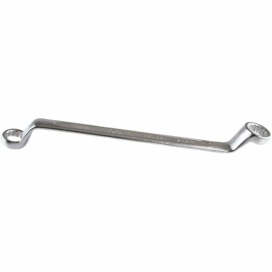 Матовая поверхность обеспечивает надежный хват и препятствует выскальзыванию инструмента из рук. Профиль накидной части из 12 граней подходит к головкам болтов и гайкам как 6-, так и 12-гранного профиля. Изогнутая под углом 75° рабочая часть ключа дает возможность работы с крепежом, расположенным в углублениях.