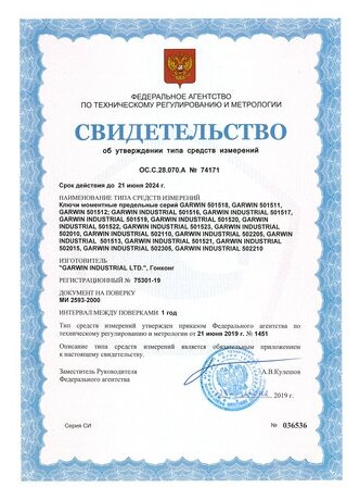 Инструмент внесен в Госреестр средств измерений РФ под номером 75301-19.