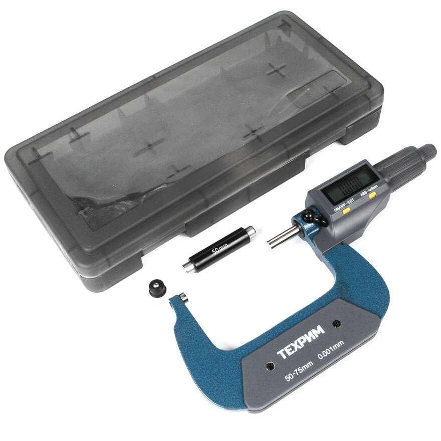 Микрометр гладкий цифровой для наружных измерений ТЕХРИМ T050013 - универсальный прибор для измерений линейных размеров абсолютным или относительным контактным методом с низкой погрешностью в области малых размеров. Преобразовательным механизмом является микропара “винт - гайка”.