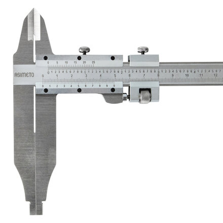 Штангенциркуль нониусный ASIMETO 0302-12-8 серии 302 из нержавеющей стали с губками для внутренних и наружных замеров. Предназначен для измерения линейных размеров малогабаритных деталей.