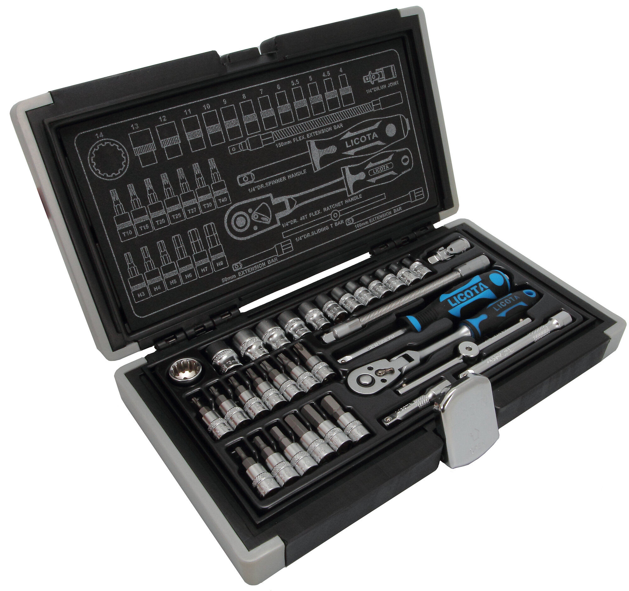 Licota ALK-0003 Набор торцевых головок 1/4" 33пр super lock (размер: 4-14 мм)