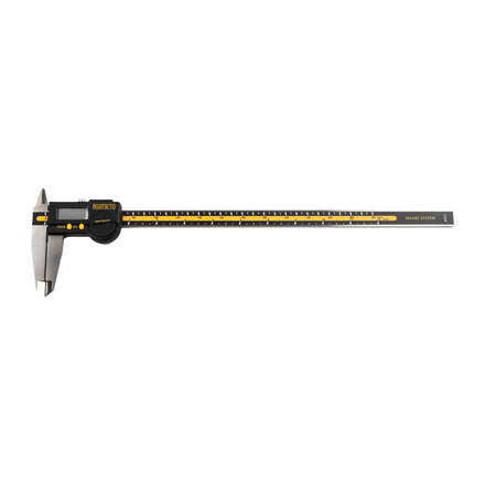 Цифровой штангенциркуль ASIMETO 301-12-0 для измерения наружных и внутренних размеров. При работе с цифровыми штангенциркулями результат измерений отображается на дисплее. Инструмент используют, когда данные необходимо получить быстро, без расчёта дополнительных шкал.