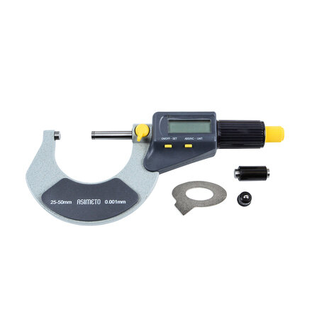 Микрометр гладкий цифровой для наружных измерений Asimeto 116-05-0 - универсальный прибор для измерений линейных размеров абсолютным или относительным контактным методом с низкой погрешностью в области малых размеров. Преобразовательным механизмом является микропара “винт - гайка”.