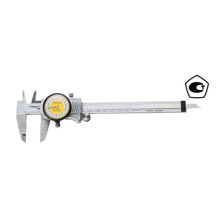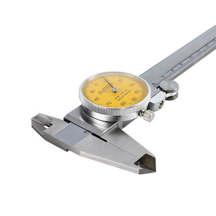 Штангенциркуль циферблатный ASIMETO 304-08-6 из нержавеющей стали предназначен для измерения линейных размеров малогабаритных деталей.
