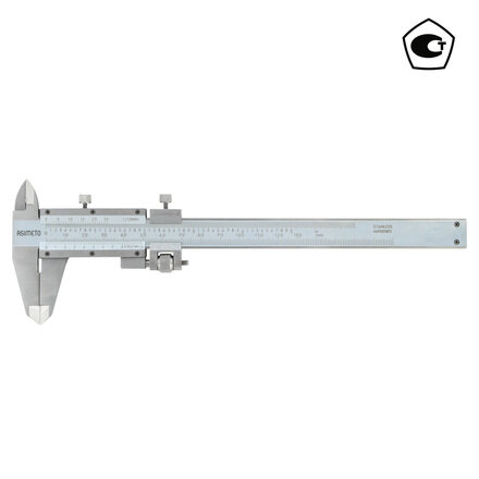 Штангенциркуль нониусный ASIMETO 0363-05-06 серии 363 из нержавеющей стали с губками для внутренних и наружных замеров и плоским глубиномером. Предназначен для измерения линейных размеров малогабаритных деталей.