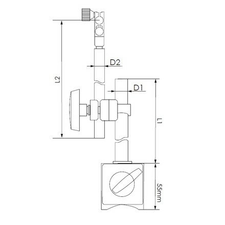 Поворотная ручка включает/выключает магнит. Закрепленный индикатор занимает необходимое положение без перемещения стойки.
