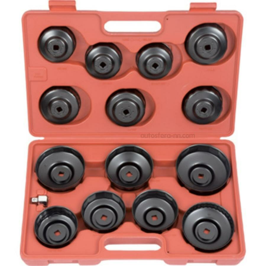 Набор чашек для съема масляных фильтров LICOTA ATA-0291 для демонтажа масляных фильтров автомобильных двигателей. Комплект из 15 предметов в пластиковом кейсе.