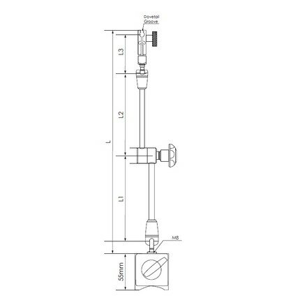 Стойка спроектирована таким образом, что позволяет закреплять индикаторный инструмент с размерами стержня 8 мм и 3/8" дюйма.