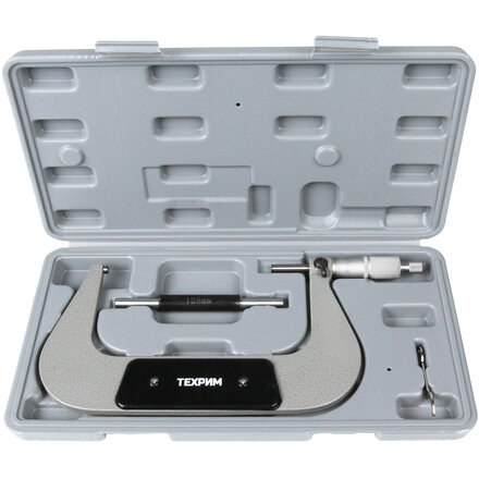 Микрометр гладкий механический для наружных измерений ТЕХРИМ T050010 - универсальный прибор для измерений линейных размеров абсолютным или относительным контактным методом с низкой погрешностью в области малых размеров. Преобразовательным механизмом является микропара “винт - гайка”.