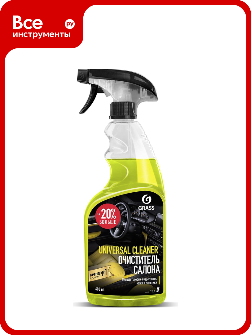 Очиститель салона Grass Universal сleaner 110392, 600 мл -предназначен для эффективного удаления загрязнений со всех видов тканей и искусственной кожи. Средство позволяет поддерживать первоначальный вид элементов интерьера автомобиля. Очиститель готов к применению, удобно наносится на поверхность. Подходит и для пластиковых деталей.