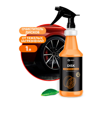 Очиститель дисков, для очистки дисков Disk проф. линейка, 1 л. Эффективное моющее средство для очистки колесных дисков от тяжелых загрязнений, не смывающихся с помощью автошампуня, таких как: смолы, нефтепродукты, сажа, ржавчина, а также пыль от тормозных колодок. Безопасен для лакокрасочного покрытия, резиновых и пластиковых деталей, изделий из цветных металлов