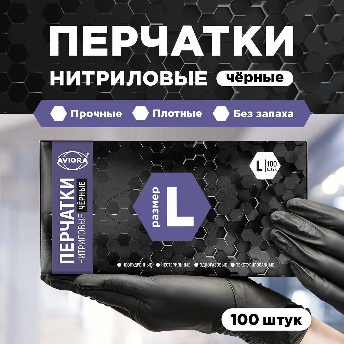 AVIORA 402-796 Перчатки нитриловые черные (5 гр) - L 100 шт. в уп.