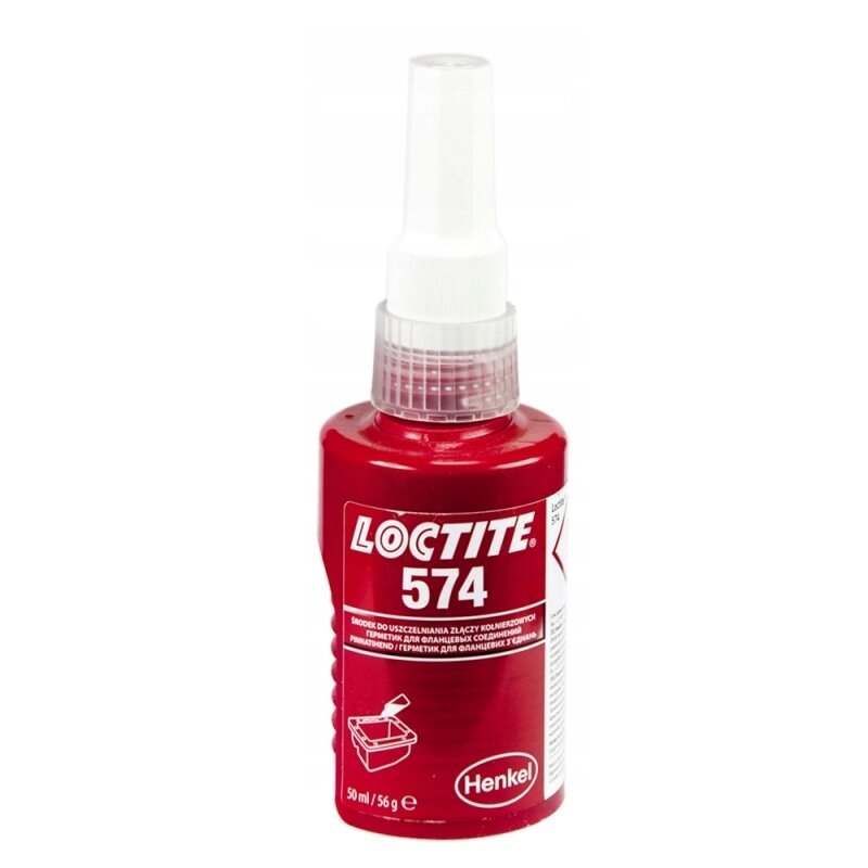 LOCTITE 574 предназначен для герметизации жестких металлических фланцевых соединений. Продукт полимеризуется в условиях отсутствия воздуха в небольших зазорах между металлическими поверхностями. Герметичность на низкое давление достигается сразу после сборки фланцев. LOCTITE 574 является тиксотропным, что исключает растекание продукта по поверхности после нанесения. Особенности: жидкая прокладка, формируемая на месте; герметичность сразу после сборки фланцев; очень высокая маслостойкость; тиксотропный - исключает растекание продукта по поверхности после нанесения; флуоресцентный - позволяет контролировать факт наличия и равномерности нанесения состава на поверхность. Область применения: Герметизация фланцев в коробках передач, двигателях и т.п. Применяется для использования на всех типах жестких стальных, чугунных и алюминиевых фланцев. Метод применения: Для достижения наилучшего эффекта сопрягаемые поверхности должны быть очищены и обезжирены. Продукт предназначен для герметизации фланцевых соединений с зазором до 0,25 мм. Нанесите непрерывный валик продукта вручную или методом трафаретной печати на поверхность одного из фланцев. Проверка герметичности сразу после сборки может осуществляться низким давлением (<0,05 МПа) для контроля оптимального заполнения продуктом всех микронеровностей. Затяните фланцы сразу после сборки, чтобы избежать образования клеевого зазора между ними.