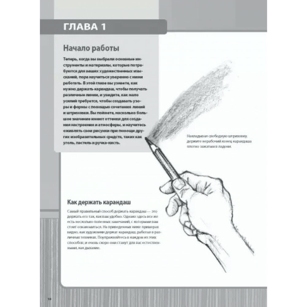 По этой книге можно запросто научиться делать наброски простым карандашом и далее совершенствовать свою технику и уровень рисования. Я ранее никогда не рисовала, и эта книга оказалась прекрасным началом для такого новичка, как я. -