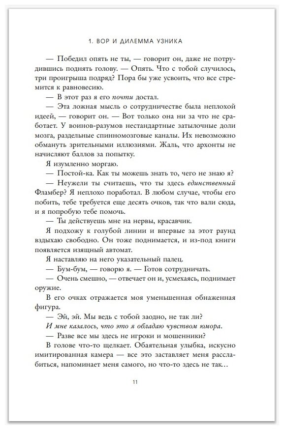 Мне понравились главы интерлюдии (они так и называются), в которых немного раскрывается герой и/или его прошлое. Так же понравилось, что главы про Вора и Сыщика разделены, четко чередуются и имеют соответствующие названия.