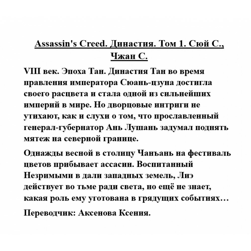 Сервис сравнения цен СкидкаГИД предлагает сравнить цены на товар «Книга: Assassin s Creed. Династия. Том 1 (Сюй Сяньчжэ); Издательство АСТ, 2022»