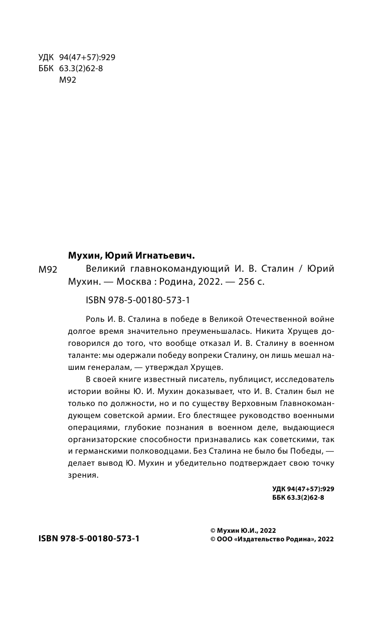 Великий главнокомандующий И.В. Сталин (Юрий Мухин); Алисторус, 2022