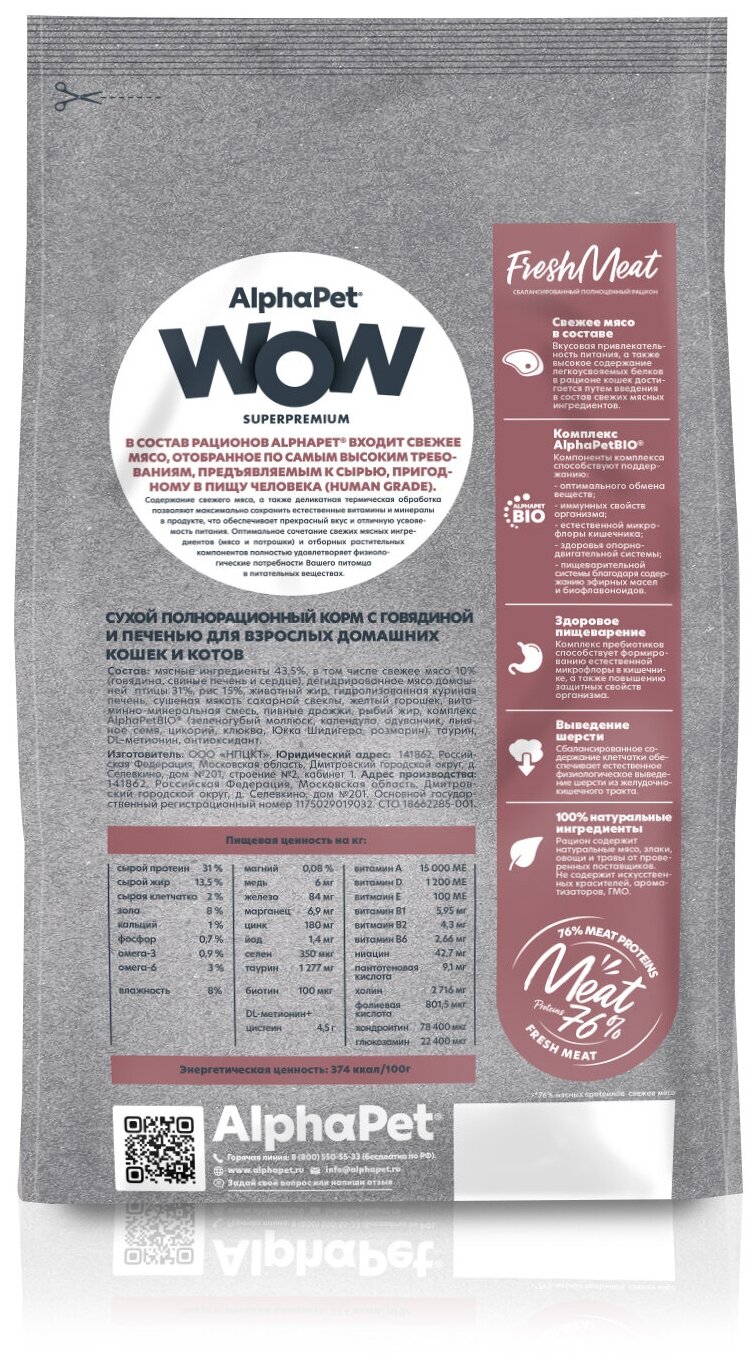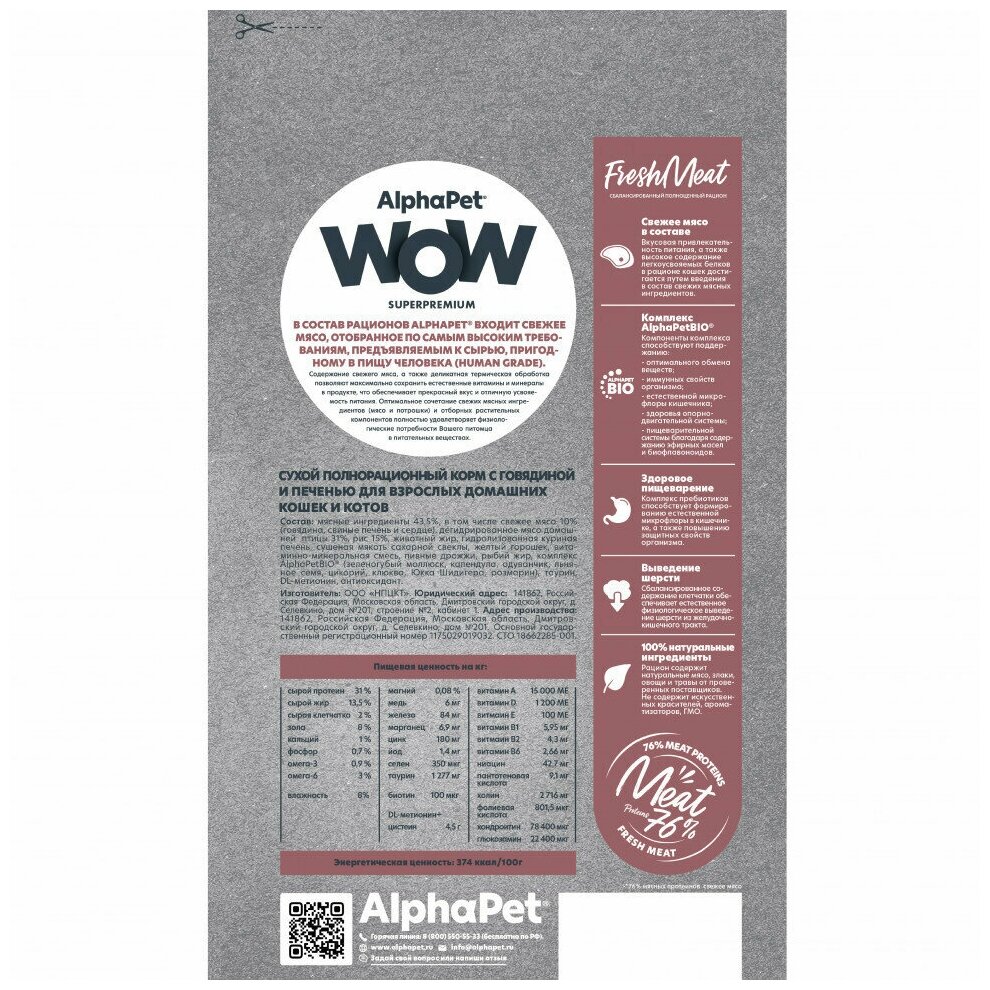 Модель: Корм сухой AlphaPet Wow Superpremium c говядиной и печенью для взрослых домашних кошек и котов 1.5 к