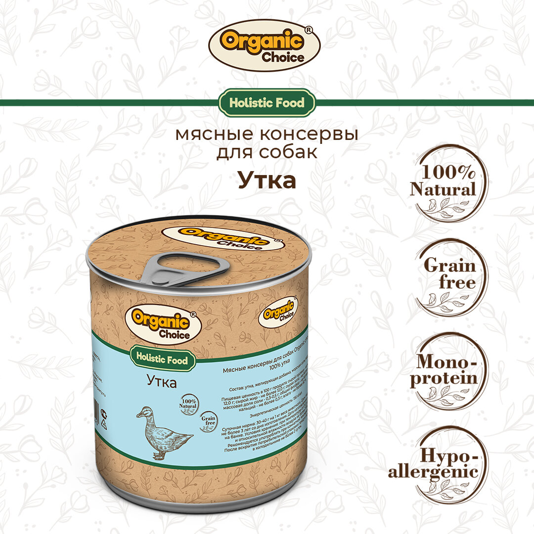 Organic Choice - монокомпонентные консервы для собак класса холистик.
