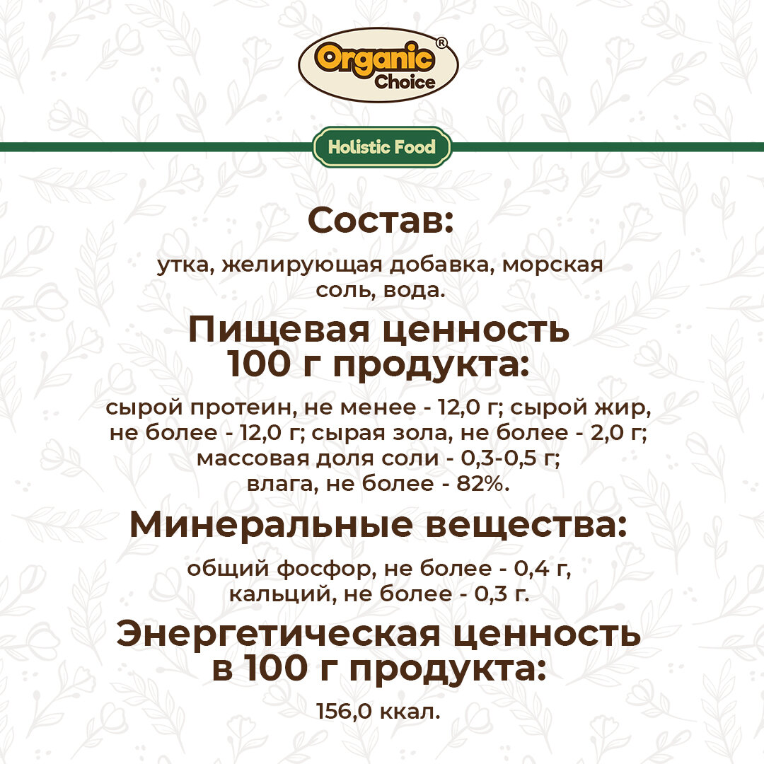 - Состав: мяса, утка, желирующая добавка, морская соль, вода.