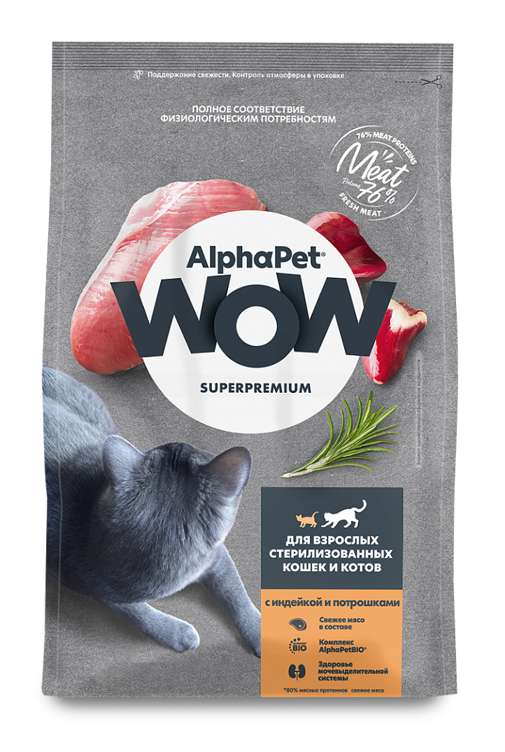 Модель: Корм сухой AlphaPet Wow Superpremium с индейкой и потрошками для взрослых стерилизованных кошек и ко