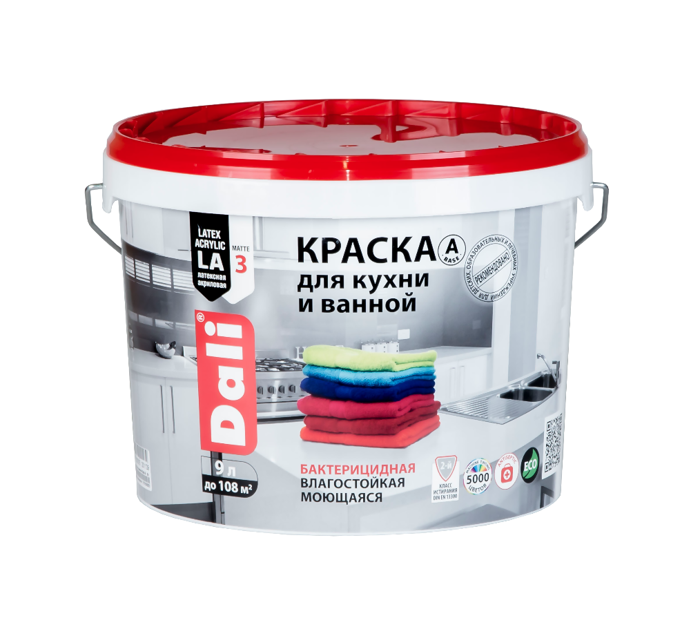 краска dali для кухни и ванной белая база а 9л