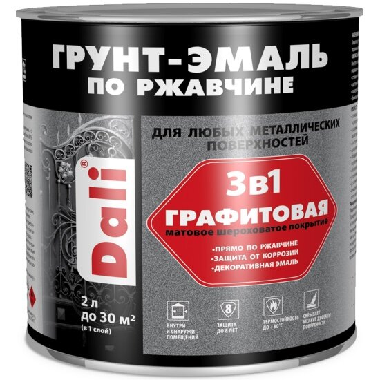 грунт-эмаль dali по ржавчине 3 в 1 графитовая серая 2л
