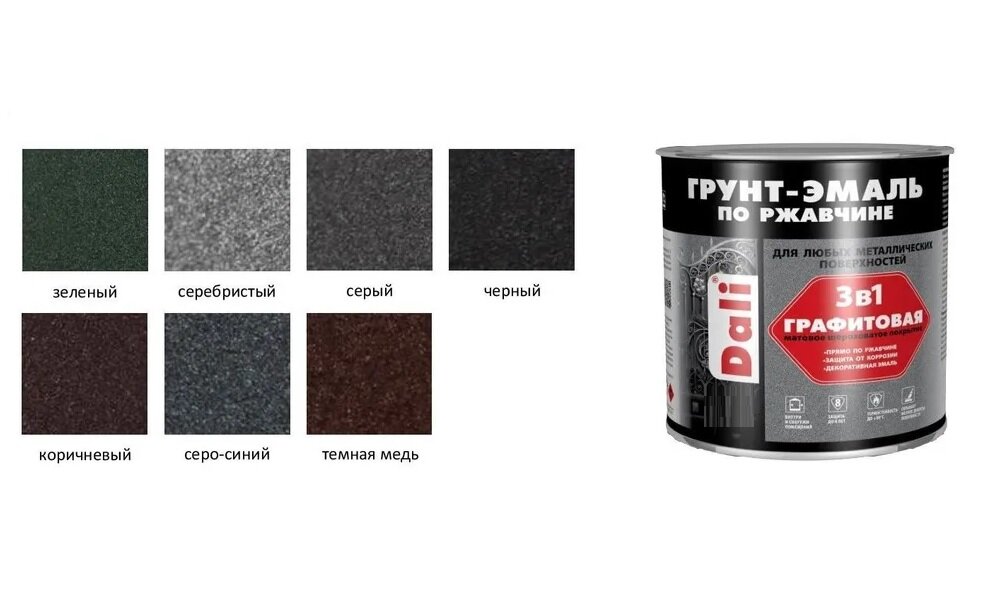 - Содержит графит, повышающий укрывистость, влагостойкость и антикоррозионные свойства покрытия;