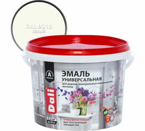 эмаль dali универсальная белая глянцевая ral 9010 база а 22кг