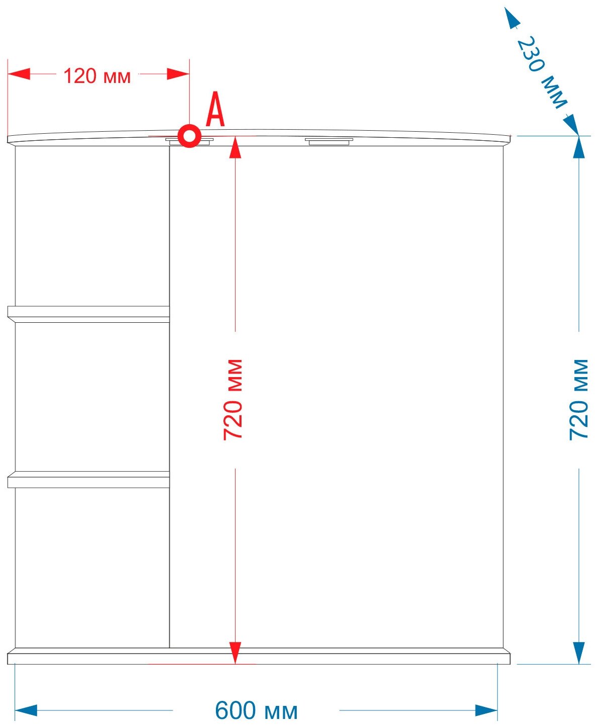 - Размеры (ШхВхГ): 600х720х250 мм.