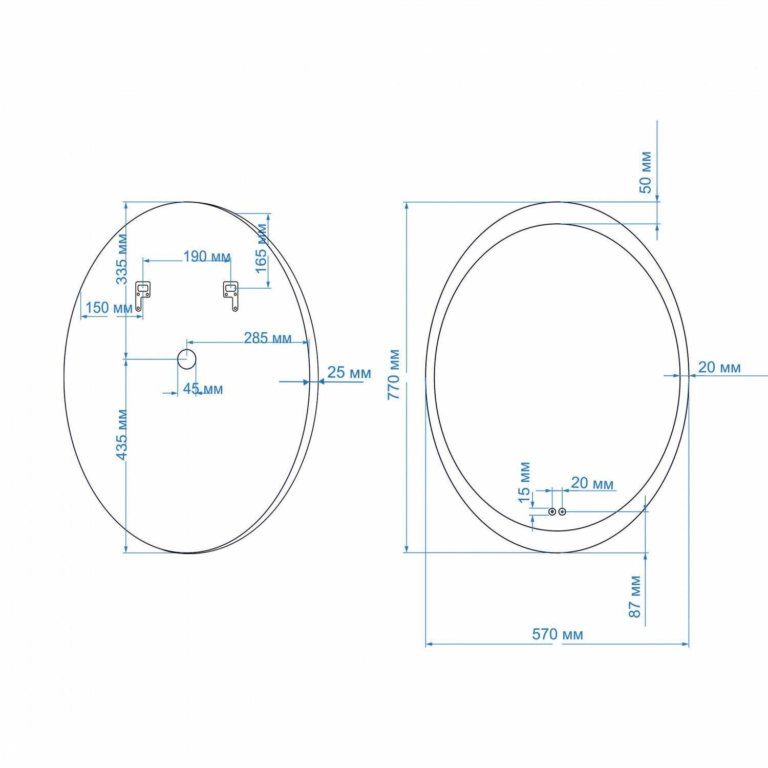 - Подсветка: светодиодная LED по всей раме зеркала, с диммируемым сенсором.