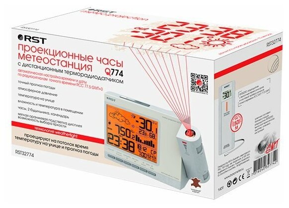 Проекционные часы RST представляют собой устройство, которое всегда известит Вас о различных погодных показателях, а также будет держать в курсе относительно условий в помещении. На дисплее данной модели выводятся следующие данные: текущее время, температура на улице (данные с радиодатчика), атмосферное давление и символьный прогноз погоды. Для повышения комфорта пользования предусмотрена янтарная подсветка дисплея.