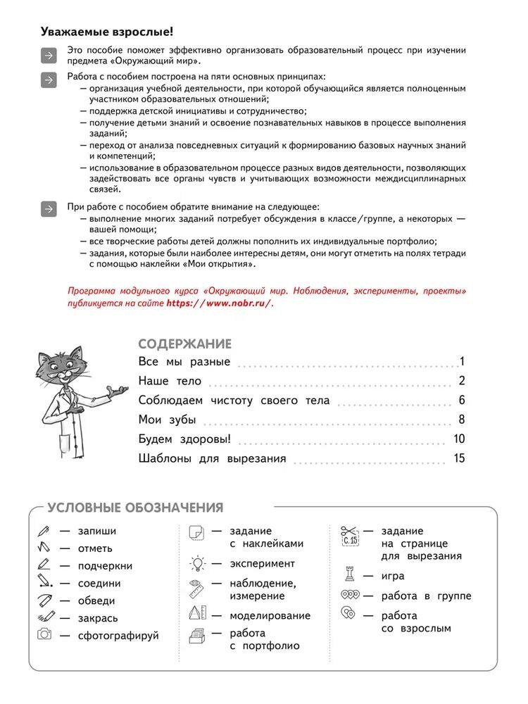 Представленная в данной тетради система заданий обеспечивает последовательное и всестороннее изучение содержательного модуля «Человек и его здоровье» на основе исследовательской деятельности младших школьников, способствует формированию у них интереса к познанию природы и развитию необходимых учебных навыков. Специальная система условных обозначений обеспечивает методическую поддержку в организации образовательного процесса.