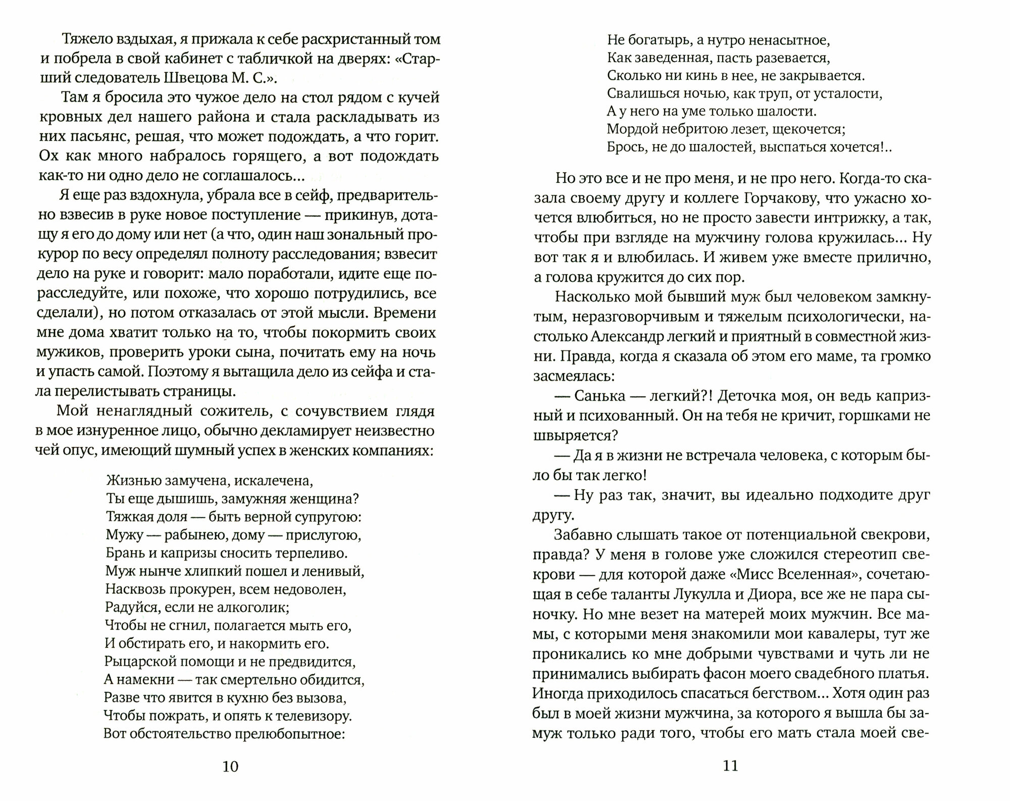 Этот роман один из самых любимых у Елены Валентиновны Топильской. Получила в подарок, очень довольна. Интересно тем, что в ходе расследования раскрылось множество тайн прошлого, Швецовой удалось отыскать по-настоящему страшные скелеты в шкафу. Тем интереснее и неоднозначнее оказалась фигура убийцы.