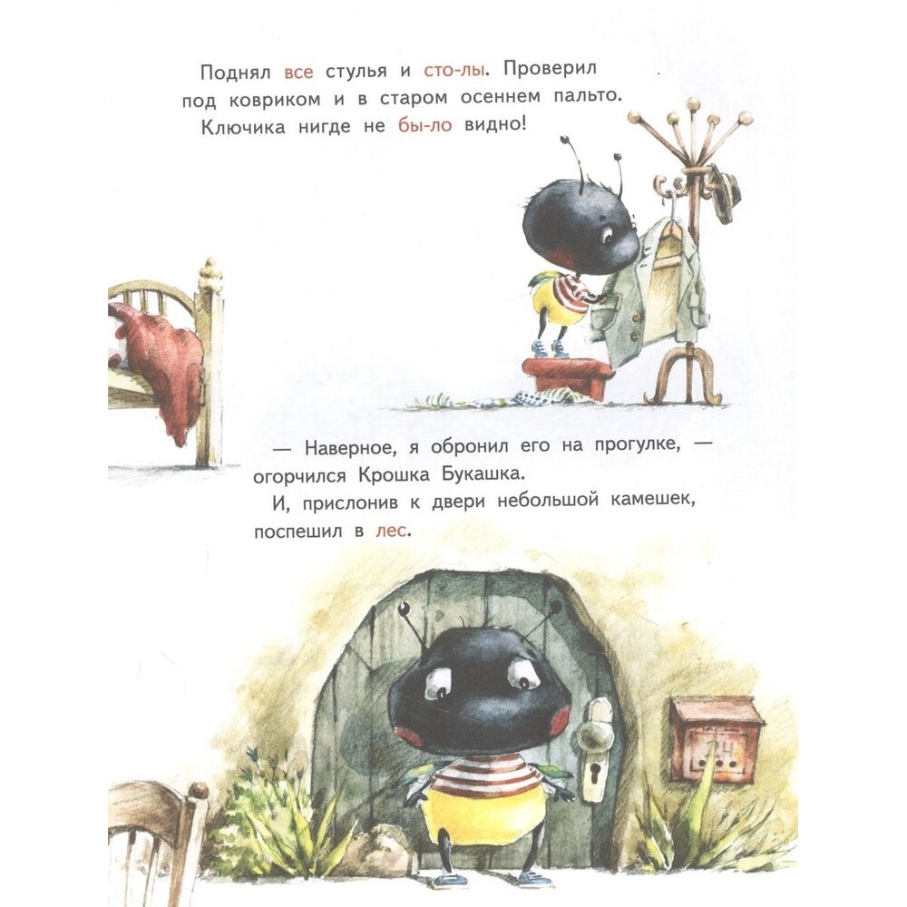 Учимся читать вместе с известной писательницей Ириной Зартайской! Сборник объединил под своей обложкой две сказки, в которых Крошка Букашка потерял ключик от дома, а Гуля промочила лапки. Эти милые истории учат приходить на помощь, видеть хорошее даже в неприятностях, общаться и дружить.