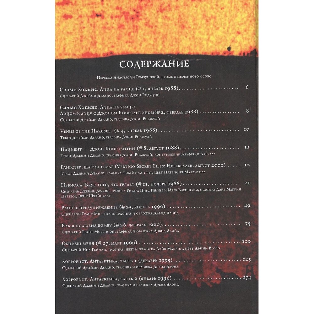 Превосходный сборник историй о харизматичном подонке-маге Джоне Константине. Внутри полтора десятка историй о нем от разномастной команды авторов и художников. Вообще ежемесячная серия комиксов Hellblazer состоит из семи довольно больших периодов, когда над ней работал определённый писатель (например Гарт Эннис, трёхтомник которого тоже есть на русском). Но иногда основному автору требовался так сказать перекур - либо отдых, либо бОльший период времени для работы над сюжетом. Тогда приглашали гостевого автора - подчас очень именитого и талантливого. Именно из таких «перекуров» от Геймана, Моррисона, Аарона и других в основном и состоит сборник - но в самом лучшем смысле, потому что истории вышли действительно чудесными