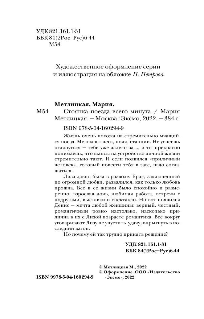 Стоянка поезда всего минута (Метлицкая Мария Робертовна); ООО "Издательство "Эксмо", 2022