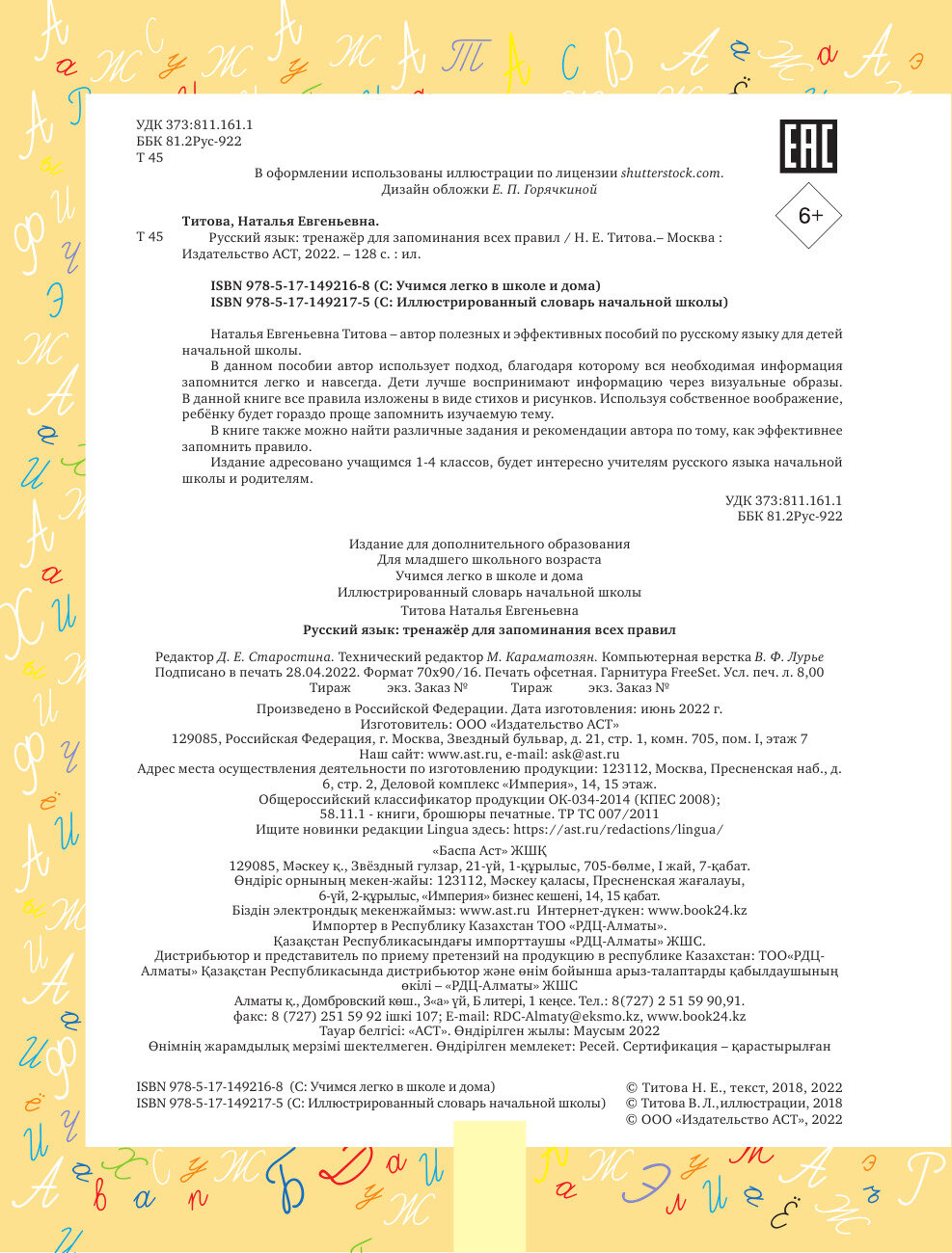 Русский язык: тренажёр для запоминания всех правил (Титова Наталья Евгеньевна); ИЗДАТЕЛЬСТВО "АСТ", 2022